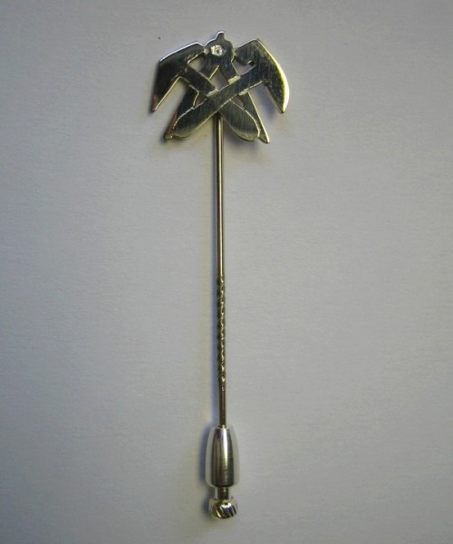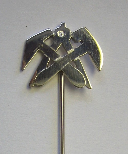 Diese Anstecknadel zeigt das Zunftzeichen der Dachdecker.