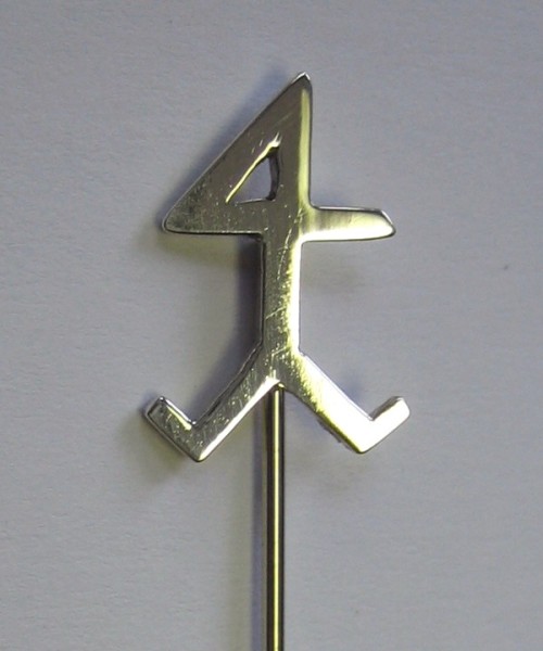 Diese Anstecknadel zeigt das Zunftzeichen der Steinmetze.