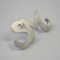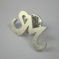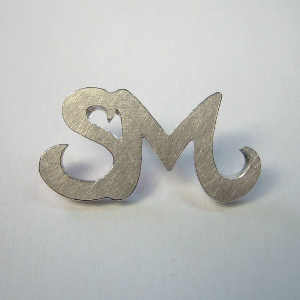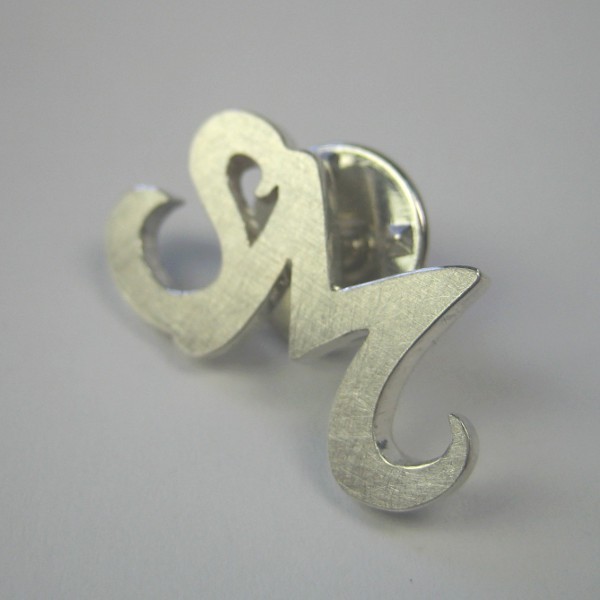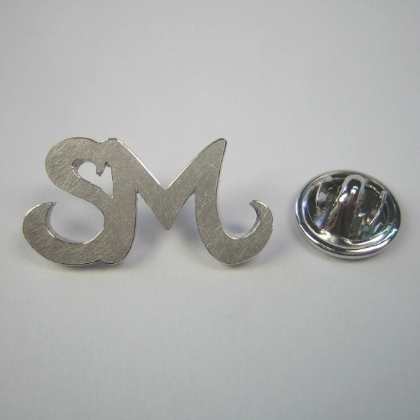 Dieser Pin zeigt nur die Buchstaben - der Stoff an den der Pin gesteckt wird ist durch die Öffnungen sichtbar. Der Pin ist auf der Oberseite mattiert.