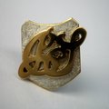 Dieser Pin hat eine Wappenform. Die Initialen, die Kanten und die Rückseite sind vergoldet. Der Pin-Stecker ist ebenfalls vergoldet.