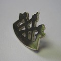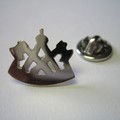 Dieser Pin zeigt das Zunftzeichen der Zimmerer.