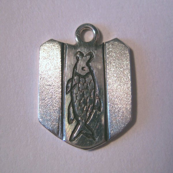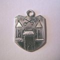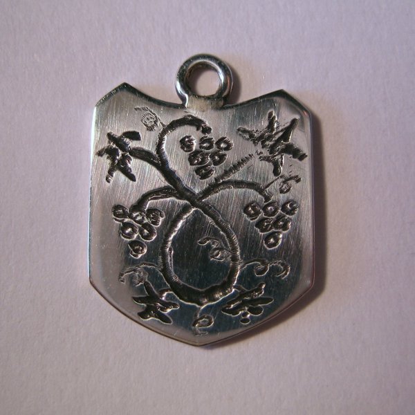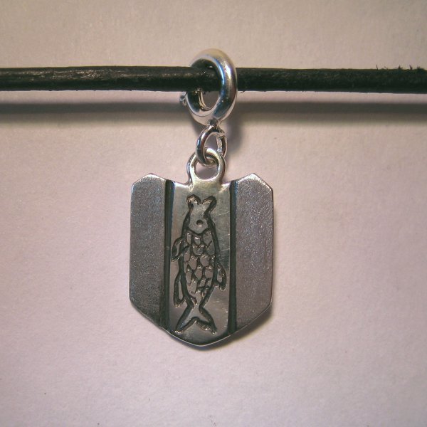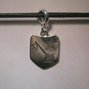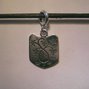 Wappenanhänger mit dem Stadtwappen von Ladenburg mit einem kleinen Federring. Die Gravur ist leicht geschwärzt.