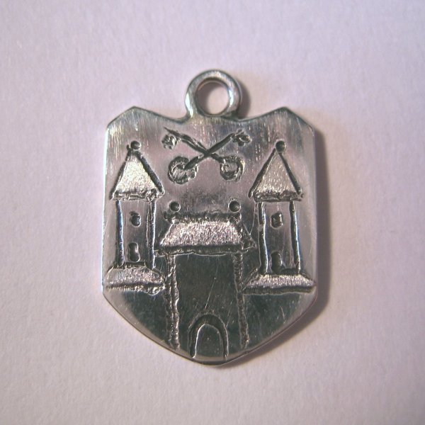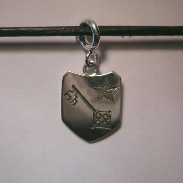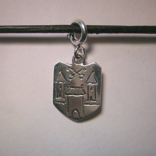 Wappenanhänger mit dem Stadtwappen von Worms mit einem kleinen Federring.